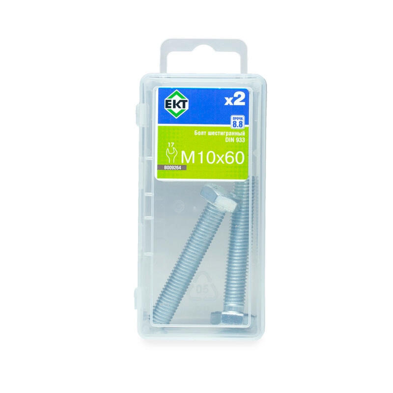 Болт шестигранный М10х60 мм, оцинкованный. Класс прочности 8.8. Соответствует стандарту DIN 933. Изготовлен из конструкционной стали. Упаковка: 2 штуки.