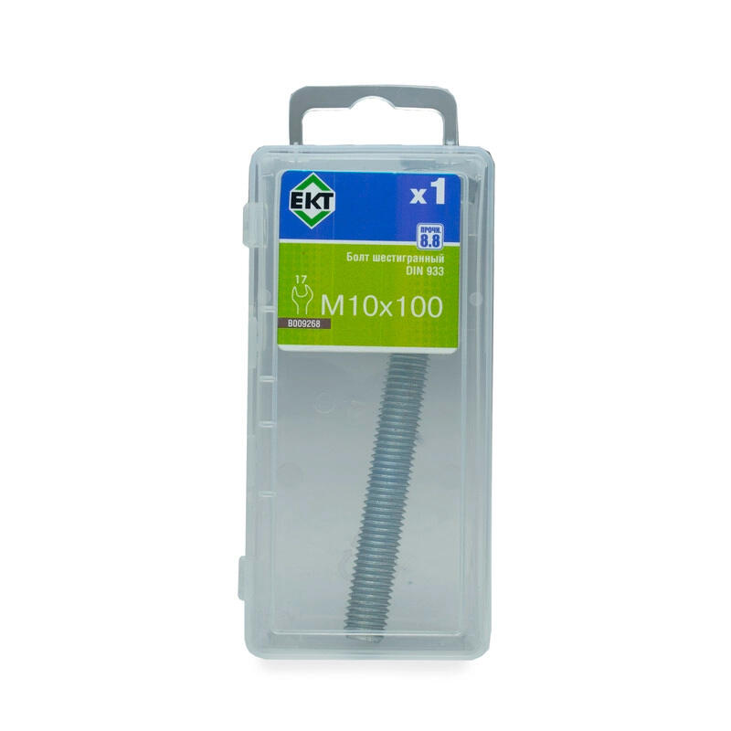 Болт шестигранный оцинкованный 10х100 мм, класс прочности 8.8 по стандарту DIN 933. Изготовлен из конструкционной стали с полной метрической резьбой и шестигранной головкой под ключ. Бренд: ЕКТ. Производство: Беларусь. Упаковка: 1 шт.