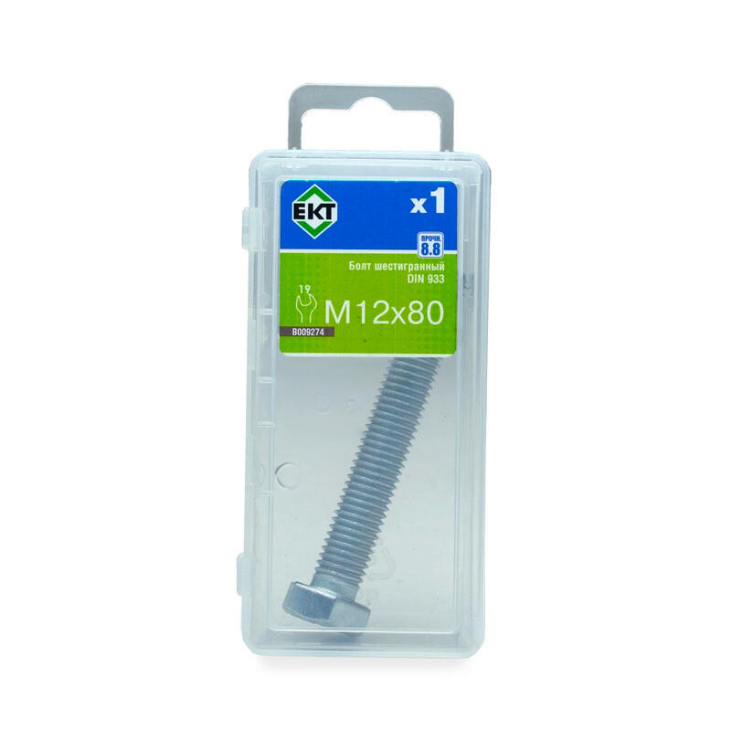 Болт шестигранный оцинкованный диаметром 12 мм, длиной 80 мм. Класс прочности 8.8, соответствует стандарту DIN 933. Упаковка: 1 штука.