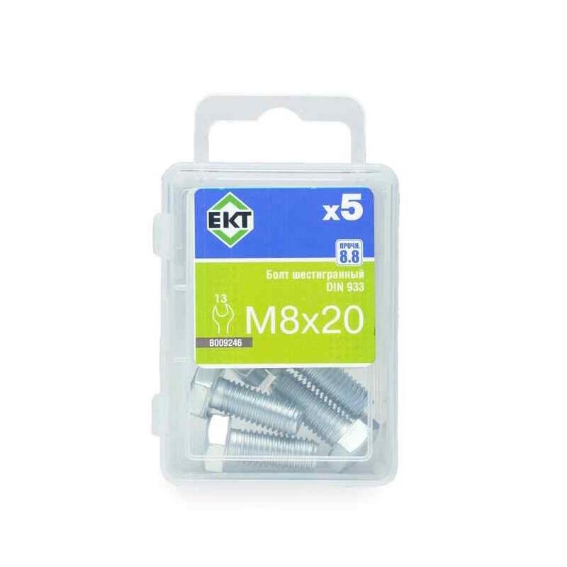Болт шестигранный оцинкованный 8х20 мм. Класс прочности 8.8. Соответствует стандартам DIN 933 и ГОСТ 7798-70. Материал: сталь с цинковым покрытием. Упаковка: 5 штук.