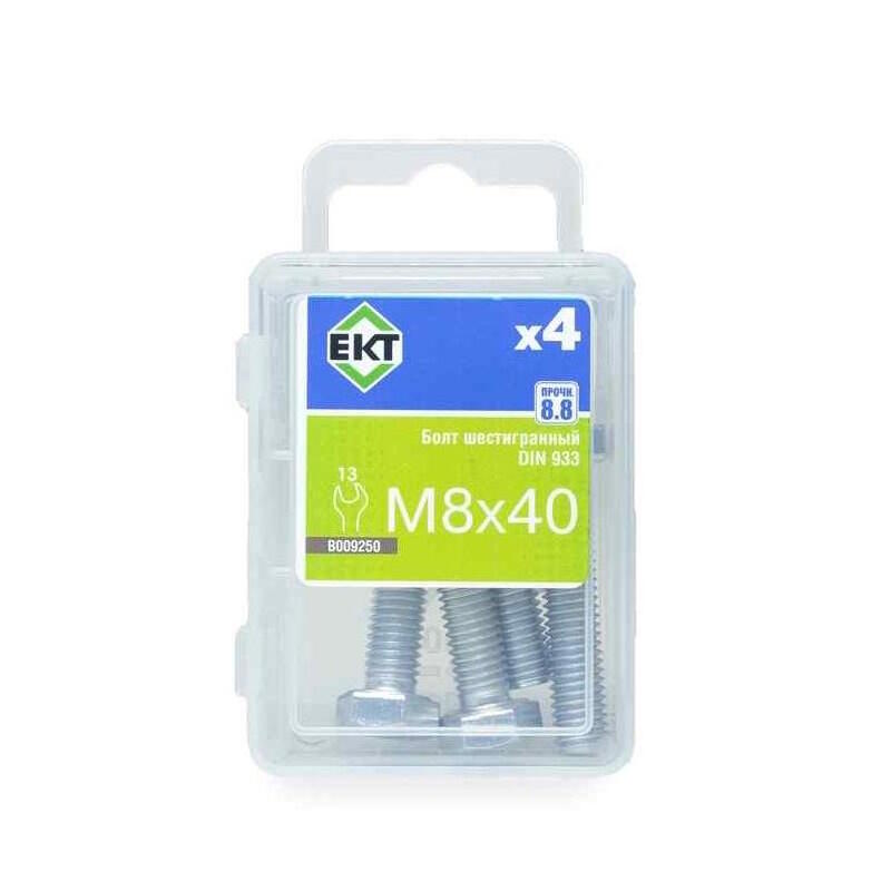 Болт шестигранный DIN 933, диаметр резьбы 8 мм, длина 40 мм. Класс прочности 8.8. Материал: оцинкованная сталь. Упаковка: 4 штуки.