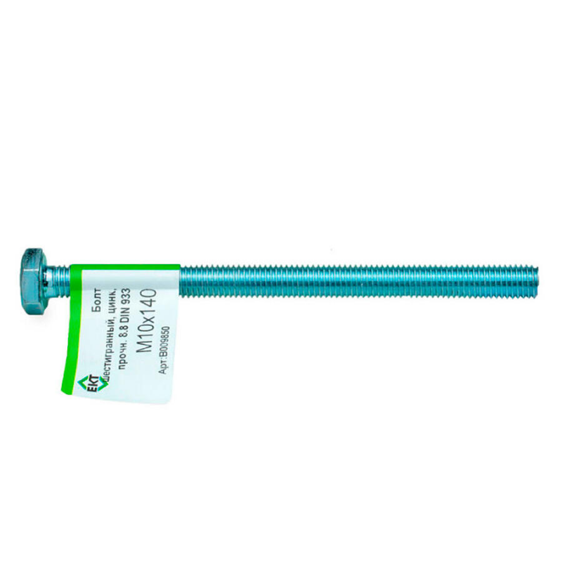 Шестигранный болт М10х140 из оцинкованной стали. Класс прочности 8.8. Соответствует стандарту DIN933.