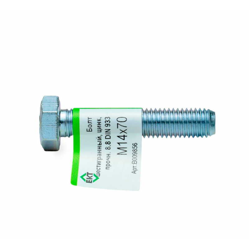 Шестигранный болт М14х70 из оцинкованной стали. Класс прочности 8.8, соответствует стандарту DIN 933. Продается поштучно с этикеткой производителя.