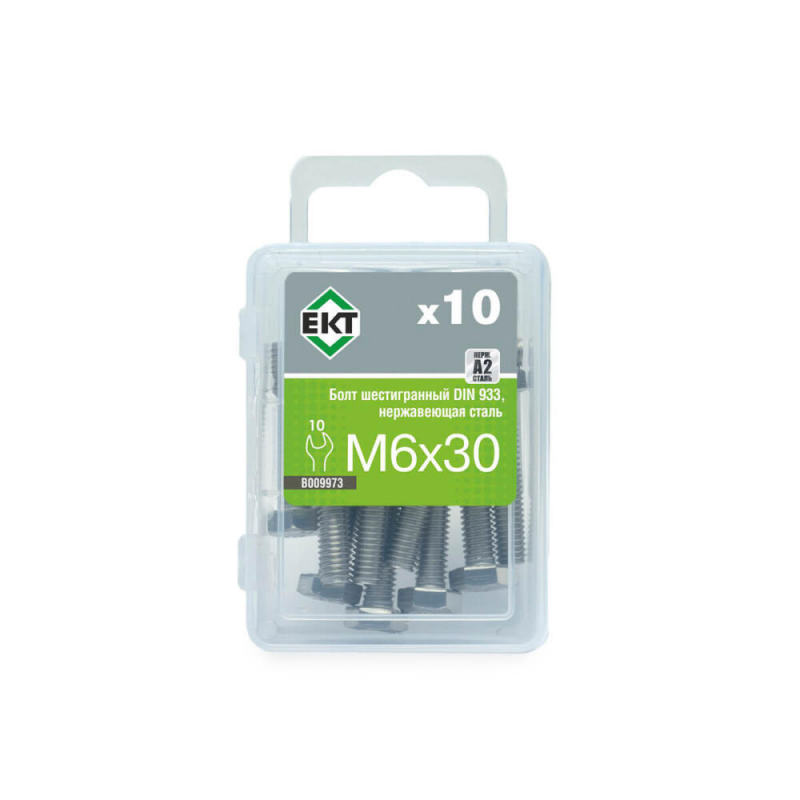Высокая коррозионная стойкость нержавеющей стали. Точное соответствие международному стандарту DIN933. Удобная упаковка по 10 штук. Универсальное применение.