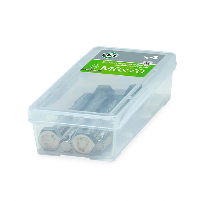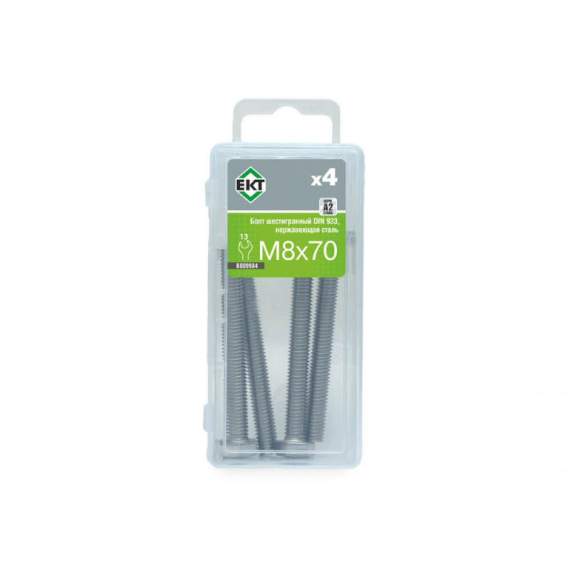 Болт шестигранный M8х70 мм из нержавеющей стали по стандарту DIN933. Упаковка содержит 4 штуки.