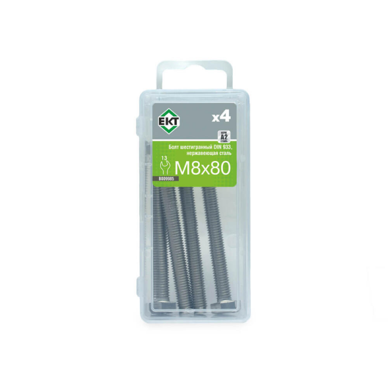 Болт шестигранный M8х80 из нержавеющей стали, стандарт DIN933. Комплект из 4 шт.