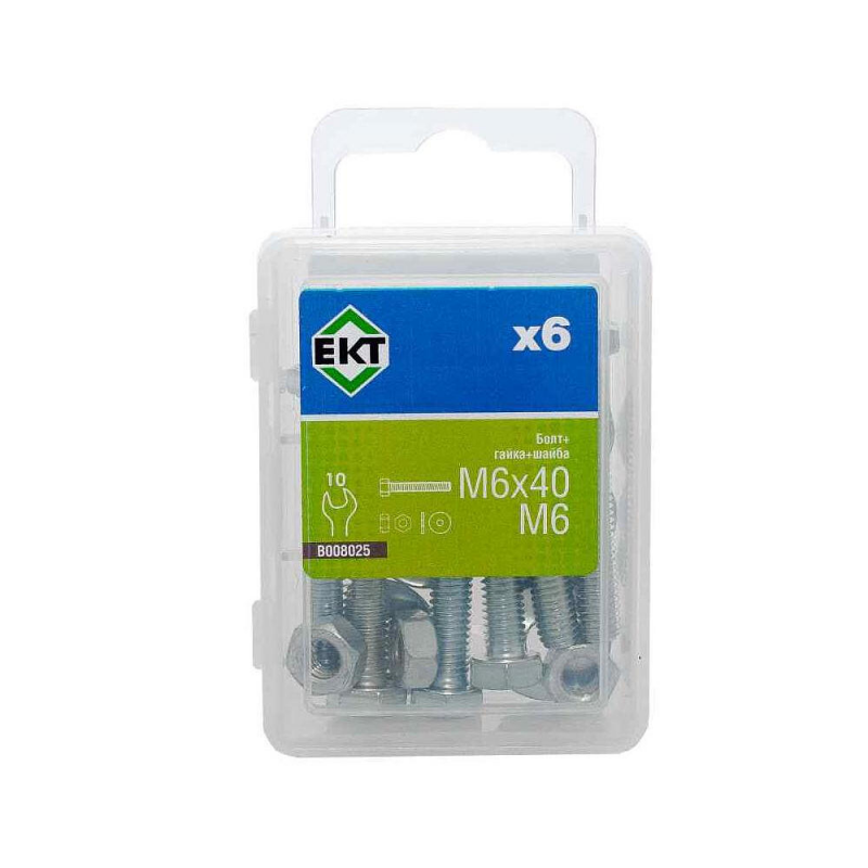 Болт шестигранный М6х40 из оцинкованной стали, комплект с гайкой и усиленной шайбой. Класс прочности 5.8, стандарт DIN 933. Упаковка: 6 шт.