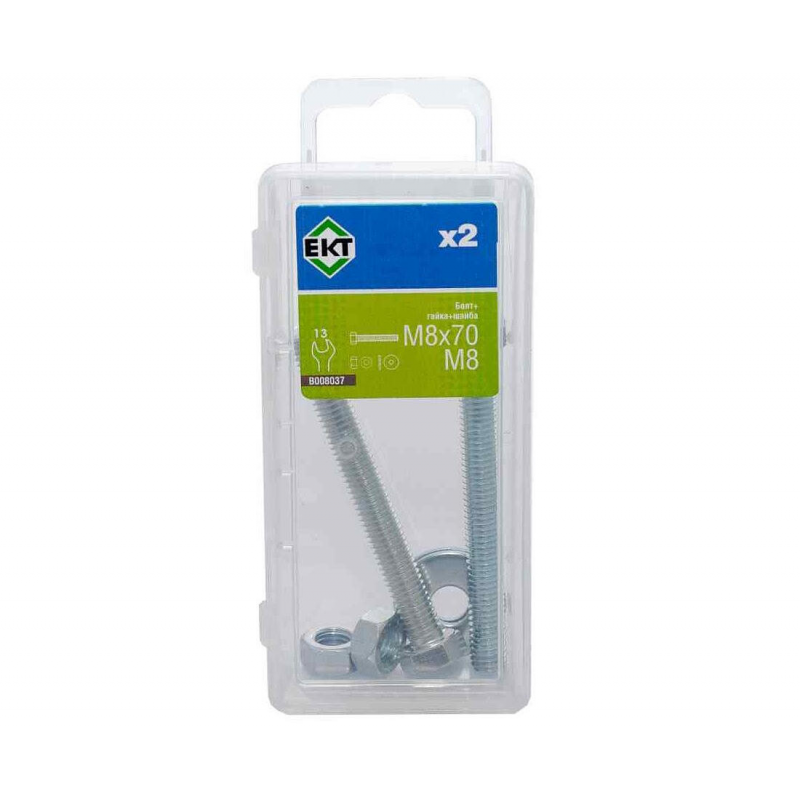 Болт шестигранный M8x70 по DIN933 из оцинкованной стали (класс прочности 5.8), комплект с гайкой и усиленной шайбой. Упаковка: 2 шт.