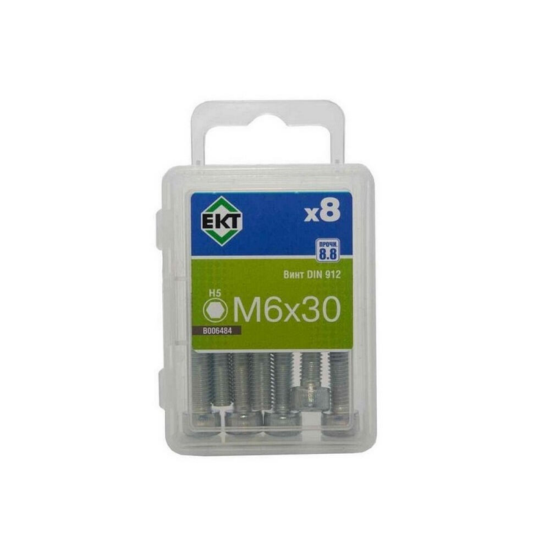Винт M6x30 с цилиндрической головкой и внутренним шестигранником. Материал: оцинкованная сталь. Класс прочности: 8.8 по DIN 912. Упаковка: 8 шт.