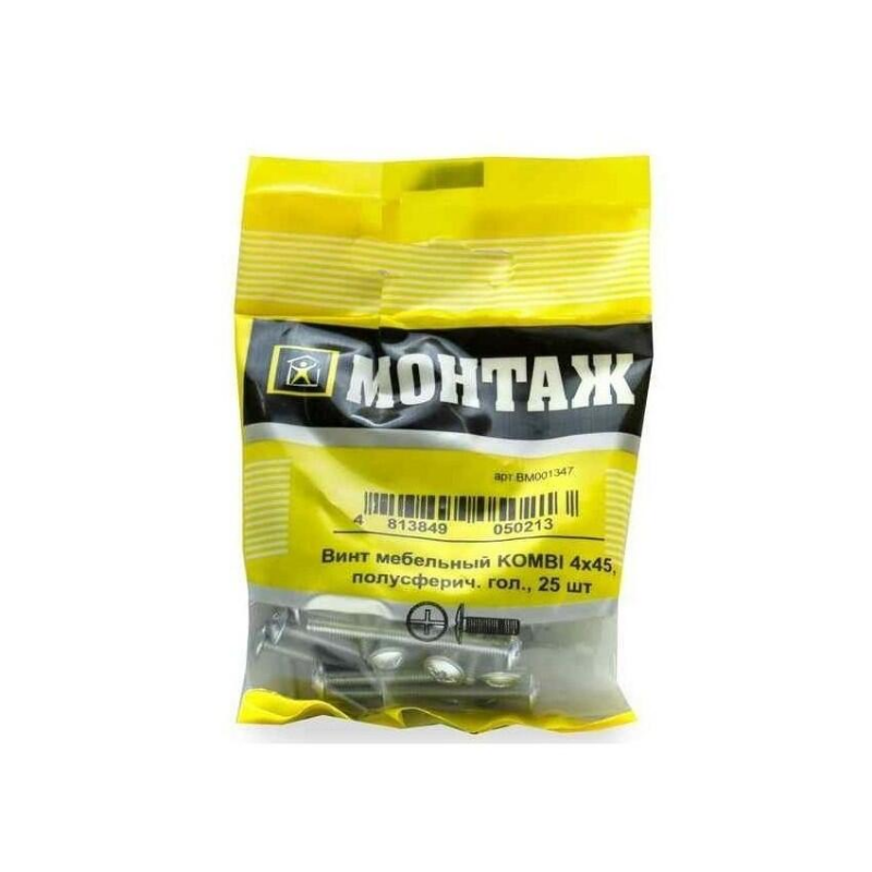 Мебельный винт KOMBI размером 4х45 мм из оцинкованной стали. Комбинированный шлиц. Упаковка: 25 штук.