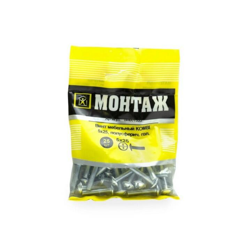 Винт мебельный 5х25 мм из оцинкованной стали с комбинированным шлицем. Упаковка содержит 25 шт.