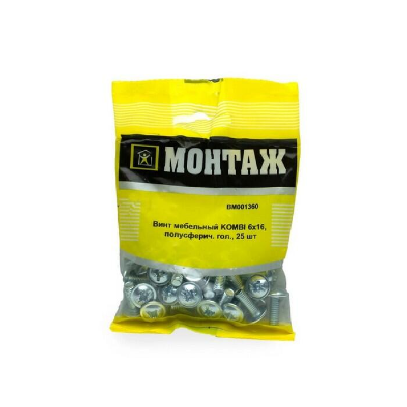 Мебельный винт диаметром 6 мм и длиной 16 мм из оцинкованной стали. Оснащен комбинированным шлицем KOMBI для универсального монтажа. Упаковка содержит 25 штук.