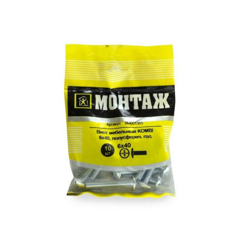 Мебельный винт из оцинкованной стали. Диаметр резьбы: 6 мм, длина: 40 мм. Комбинированный шлиц для универсального монтажа. Упаковка: 10 шт.