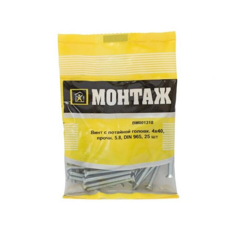 Винт потайной DIN 965, размер 4x40 мм, класс прочности 5.8. Материал: оцинкованная сталь. Тип шлица: Pozidriv. Упаковка: 25 шт.