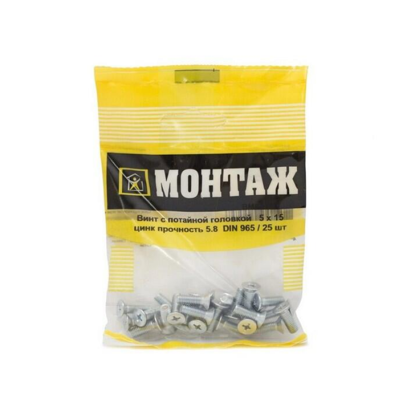 Винт потайной DIN 965, оцинкованная сталь. Размер 5х15 мм. Класс прочности 5.8. Шлиц Pozidriv. Упаковка 25 шт.