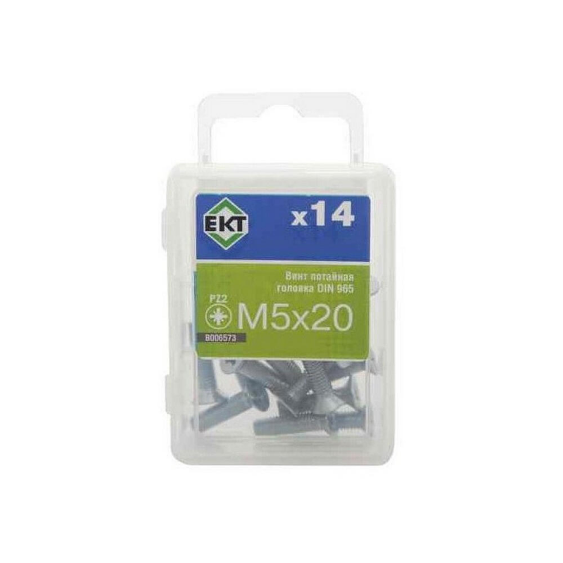 Винт потайной, оцинкованная сталь, диаметр 5 мм, длина 20 мм, шлиц POZI, класс прочности 5.8, стандарт DIN 965. Упаковка: 14 шт. Бренд: ЕКТ. Производитель: ООО «ЕКТ Компани», Китай.