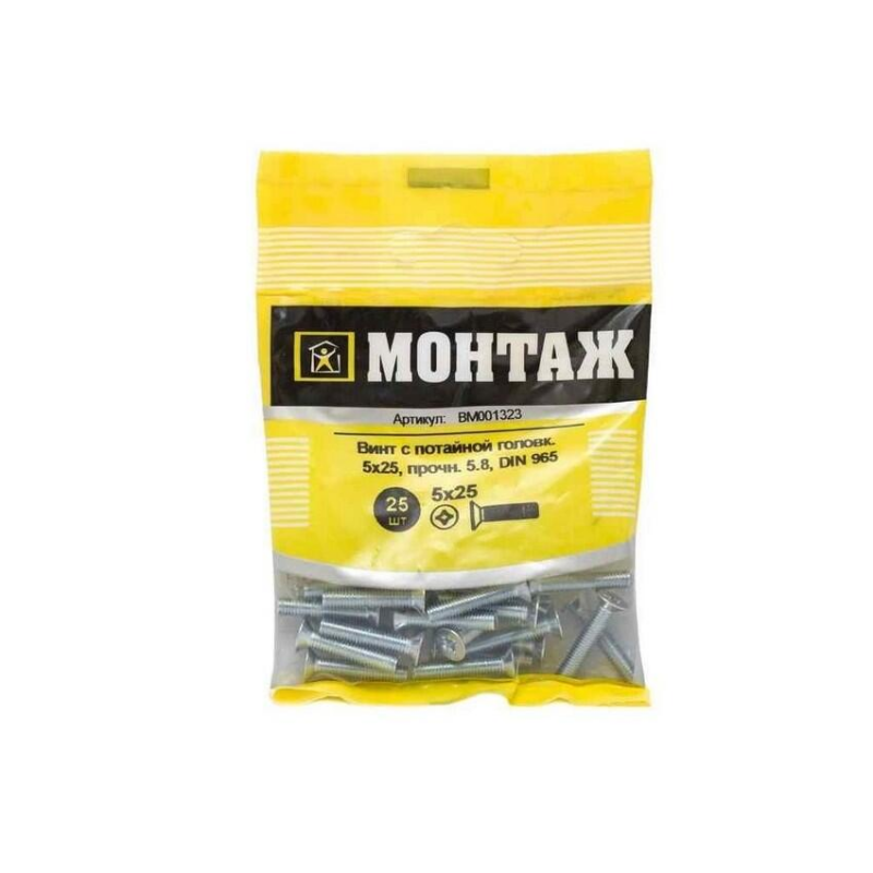 Винт потайной DIN 965, оцинкованная сталь, размер 5х25 мм. Тип шлица Pozidriv, класс прочности 5.8. Упаковка 25 шт.
