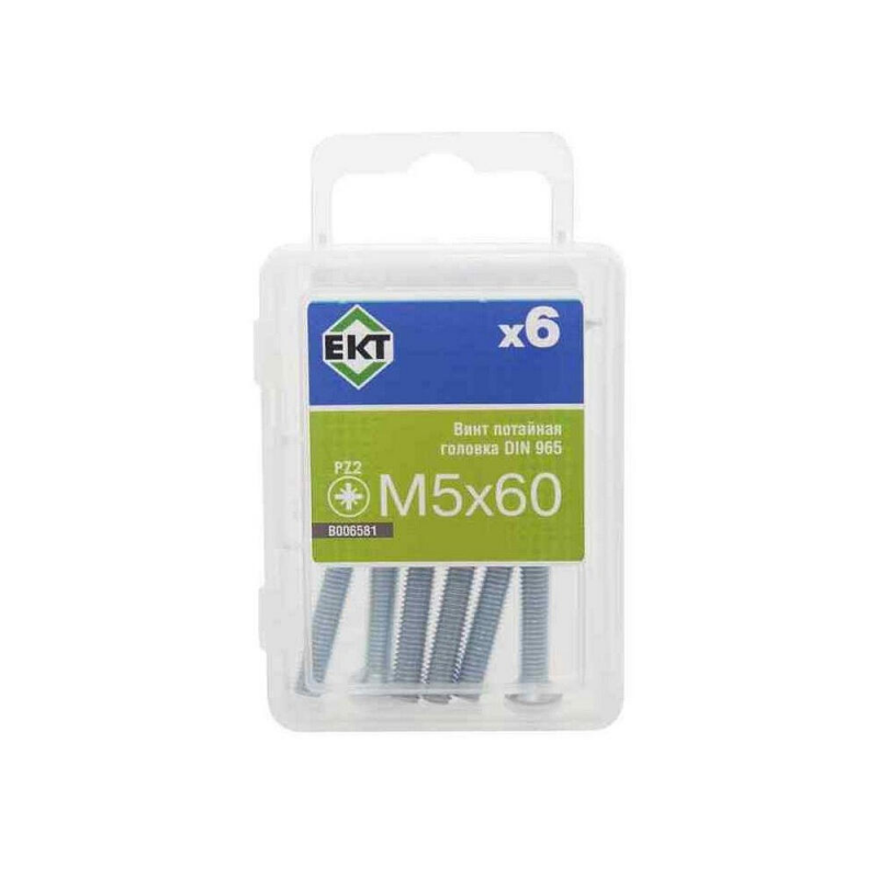 Винт потайной оцинкованный 5х60 мм с шлицем POZI. Класс прочности 5.8, соответствует стандарту DIN 965. Упаковка содержит 6 штук.