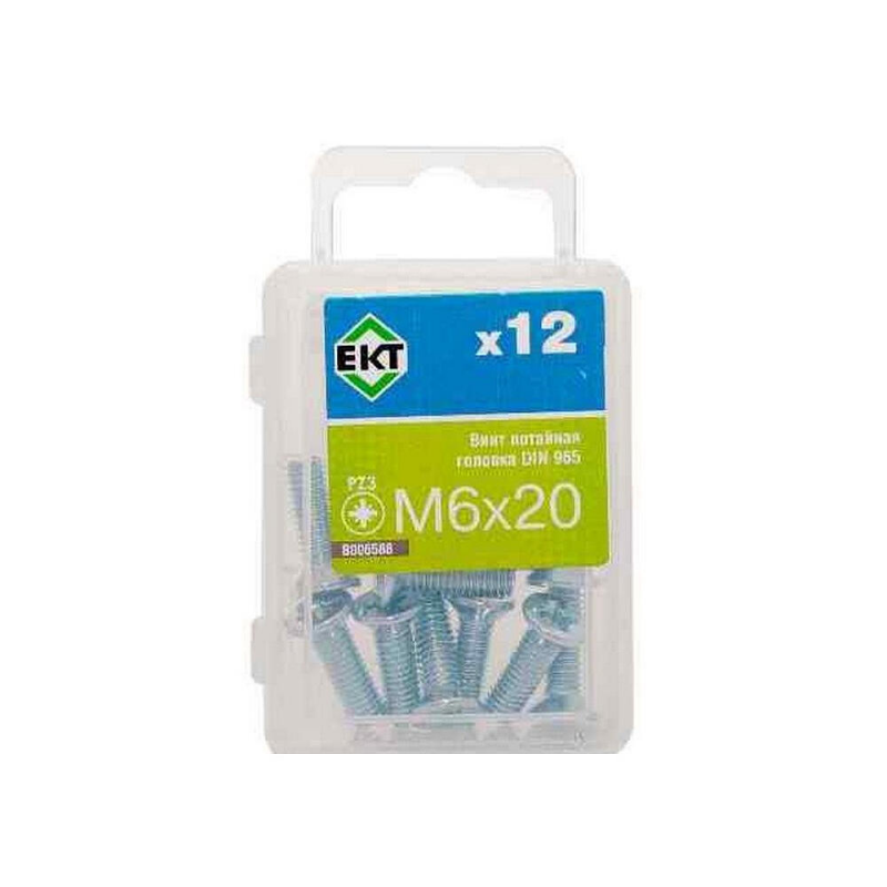 Винт потайной оцинкованный 6x20 мм с шлицем POZI, класс прочности 5.8, стандарт DIN 965. Упаковка: 12 штук.