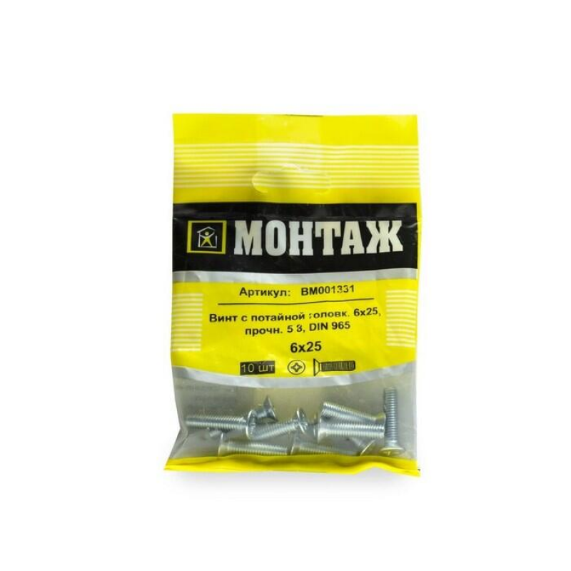 Винт потайной оцинкованный 6х25 мм. Тип шлица: Pozidriv. Класс прочности: 5.8. Соответствие стандарту DIN 965. Упаковка: 10 шт.