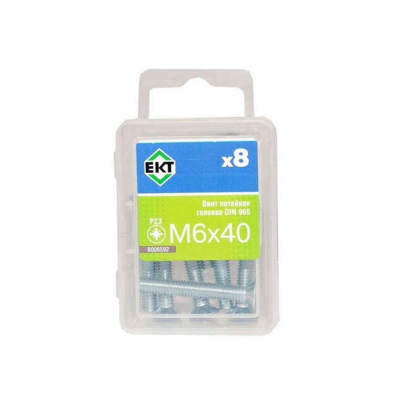 Винт потайной 6х40 мм, шлиц POZI, цинк, класс прочности 5.8. Соответствует стандарту DIN 965. Упаковка: 8 шт.