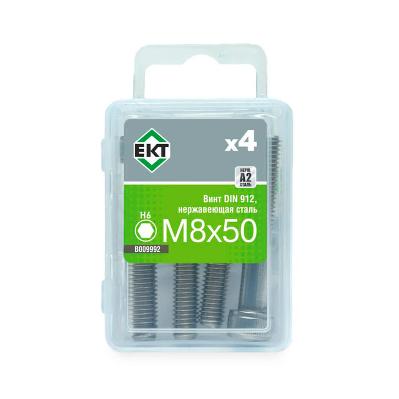 Коррозионная стойкость нержавеющей стали, точность размеров по DIN 912, удобный монтаж шестигранным ключом, повышенная прочность соединения.