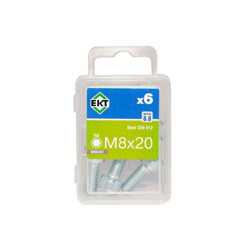 Винт M8x20 с цилиндрической головкой и внутренним шестигранником. Изготовлен из оцинкованной стали, класс прочности 8.8. Соответствует стандарту DIN 912. Упаковка содержит 6 штук.