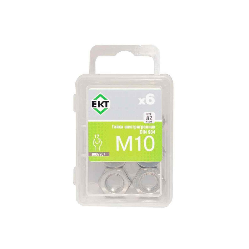 Гайка шестигранная М10 из нержавеющей стали, стандарт DIN 934, класс прочности 8. Упаковка содержит 6 штук.