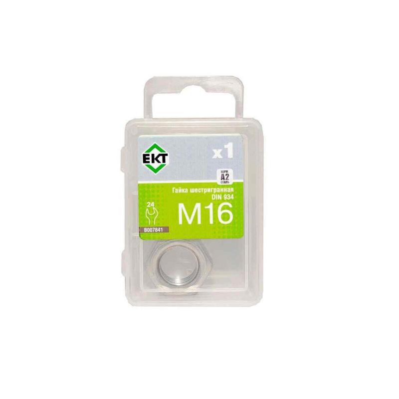 Гайка шестигранная из нержавеющей стали, диаметр резьбы M16. Соответствует стандарту DIN 934, класс прочности 8. Упаковка: 1 штука.