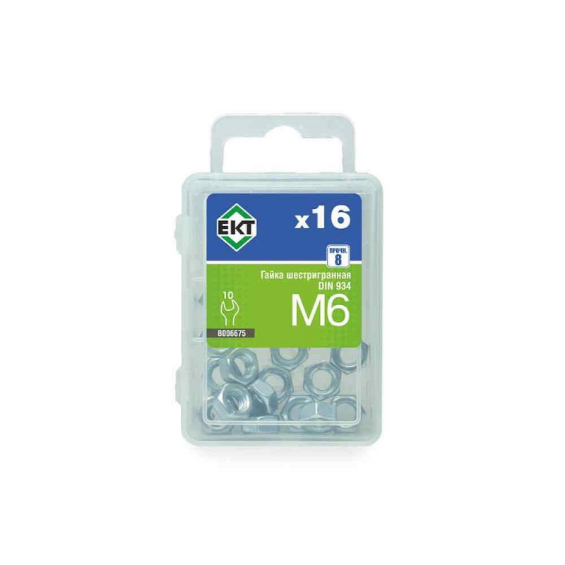 Гайка шестигранная М6 из оцинкованной стали, класс прочности 8. Соответствует стандарту DIN 934. Упаковка: 16 штук. Бренд: ЕКТ. Производитель: ООО «ЕКТ Компани», Китай. Вес упаковки: 0.04 кг.