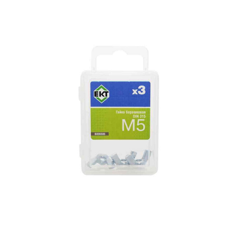 Гайка барашковая М5 стандарта DIN 315 из оцинкованной стали. Упаковка содержит 3 штуки.