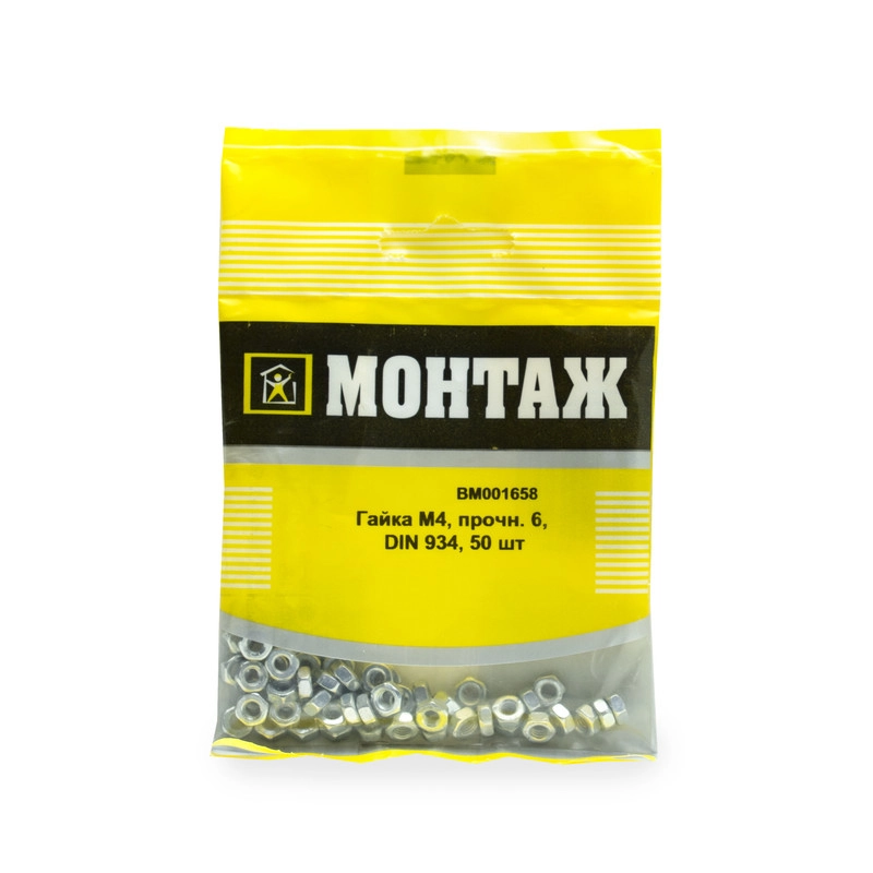 Шестигранная гайка М4 из оцинкованной стали, класс прочности 6, стандарт DIN 934. Упаковка 50 шт. Вес: 0.08 кг.