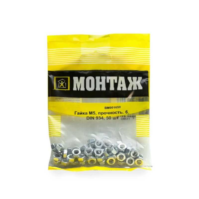 Гайка шестигранная М5, оцинкованная сталь, класс прочности 6, стандарт DIN 934. Упаковка: 50 штук.