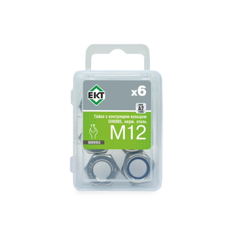 Гайка самоконтрящаяся М12, DIN985. Нержавеющая сталь. Бренд: ЕКТ. Упаковка: 6 шт.