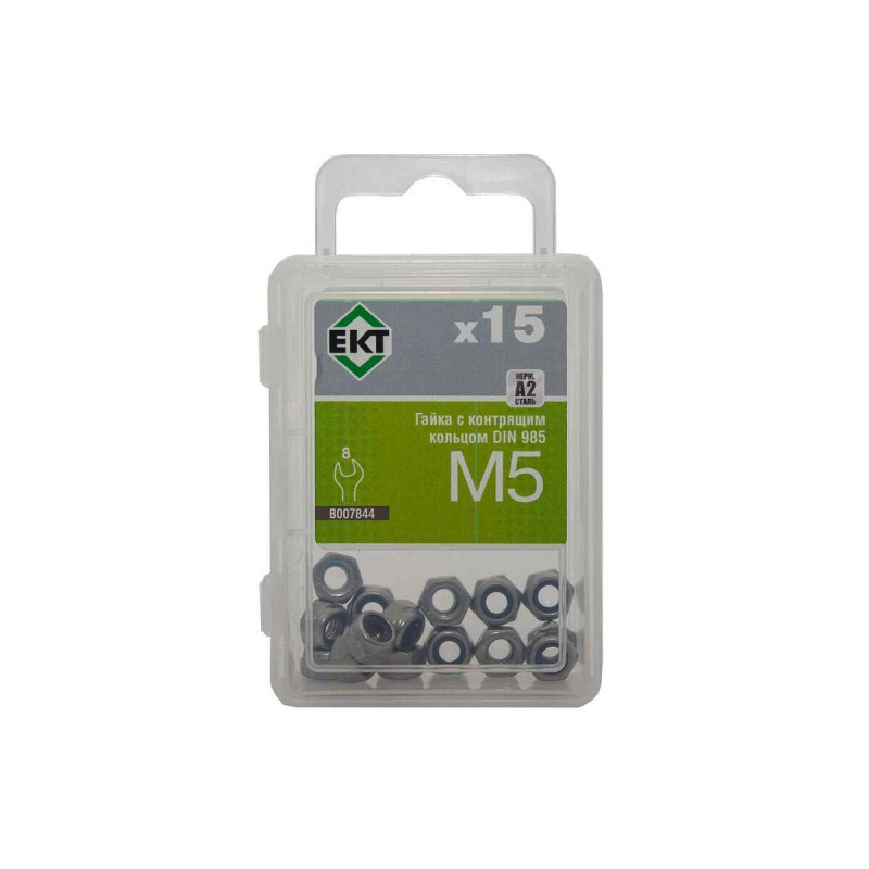 Шестигранная гайка с нейлоновым контрящим кольцом. Материал: нержавеющая сталь А2. Диаметр резьбы: М5. Соответствует стандарту DIN 985. Класс прочности: 8. Упаковка: 15 штук.
