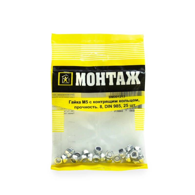Гайка М5 с контрящим кольцом, DIN 985, оцинкованная сталь, класс прочности 8. Упаковка 25 шт. Бренд Монтаж, артикул BM001213. Вес упаковки: 0.027 кг.
