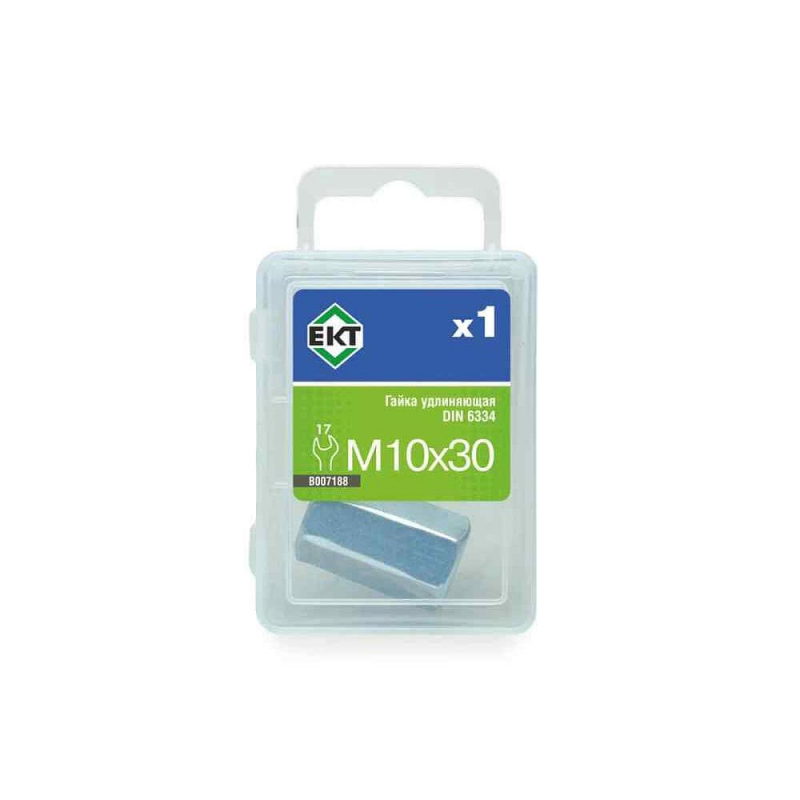 Удлиняющая гайка М10х30 DIN 6334. Класс прочности 6. Материал: сталь. Упаковка: 1 штука. Бренд: ЕКТ. Производитель: ООО «ЕКТ Компани». Страна производства: Китай.