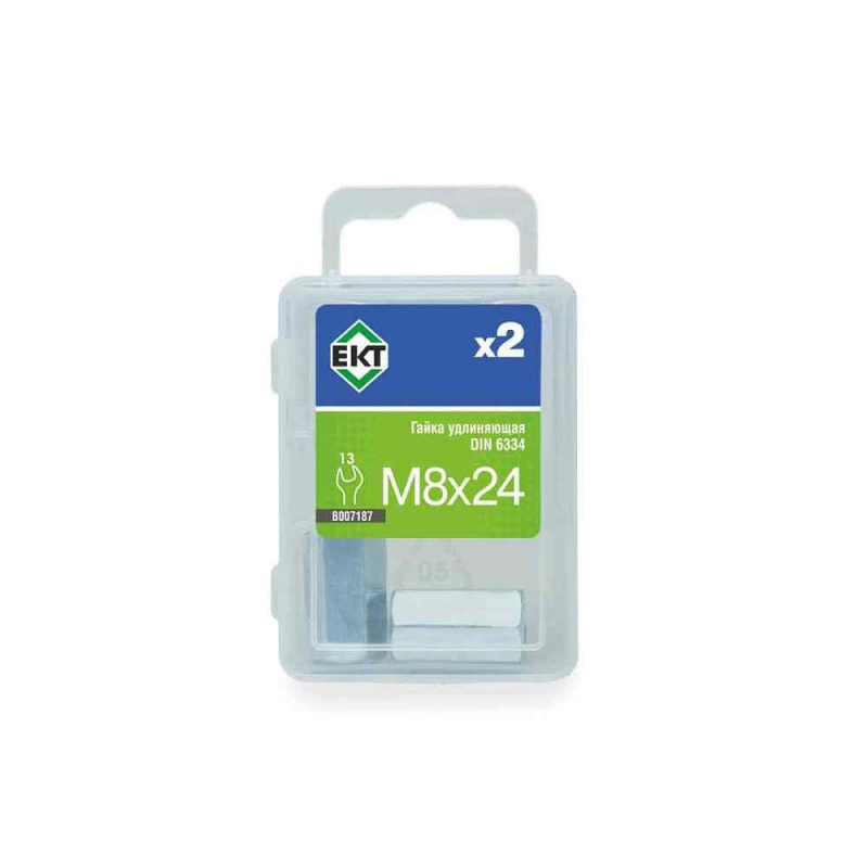 Удлиняющая гайка М8х24 DIN 6334, класс прочности 6. Материал: сталь. Упаковка: 2 шт.
