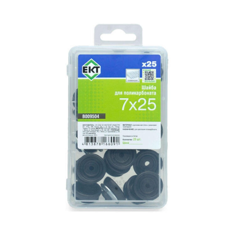 Стальная шайба 7х25 мм черного цвета для крепления сотового поликарбоната к каркасу болтами или саморезами. Упаковка: пластиковый контейнер, 25 шт.