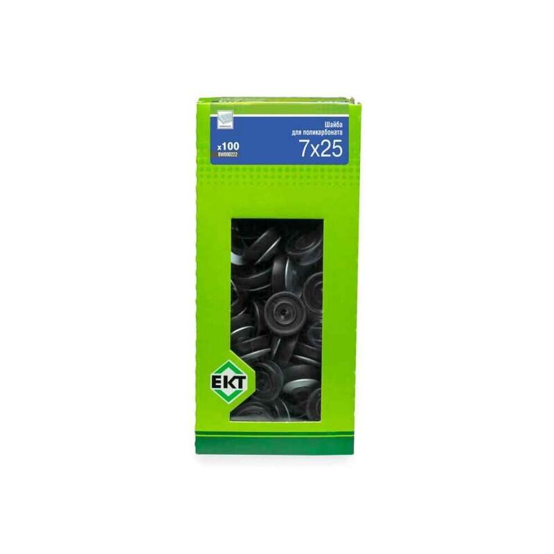 "description": "Шайба для крепления поликарбоната черного цвета. Размер: 7х26 мм. Материал: сталь. Упаковка: коробка с окном, 100 шт. Производитель: ООО «ЕКТ Компани», Китай.",