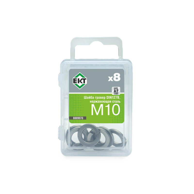 Шайба гровер М10 из нержавеющей стали, соответствующая стандарту DIN127B. Упаковка содержит 8 штук. Производитель: ООО «ЕКТ Компани», Китай.