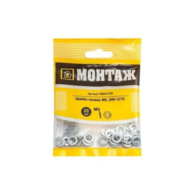 "description": "Шайба гровер М6 из оцинкованной стали, стандарт DIN 127B. Упаковка: 25 штук. Вес: 0.02 кг. Производитель: ООО «ЕКТ Компани», Китай.",