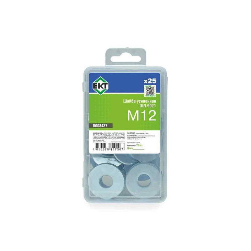 "description": "Шайба плоская усиленная М12 из оцинкованной стали. Соответствует стандарту DIN 9021, класс прочности 4.8. Упакована в пластиковый контейнер по 25 штук.",