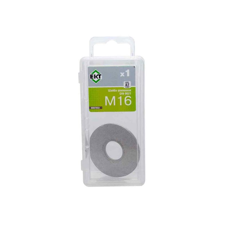 Плоская усиленная шайба из нержавеющей стали. Диаметр М16. Соответствует стандарту DIN 9021. Класс прочности 4.8. Упаковка: 1 штука.
