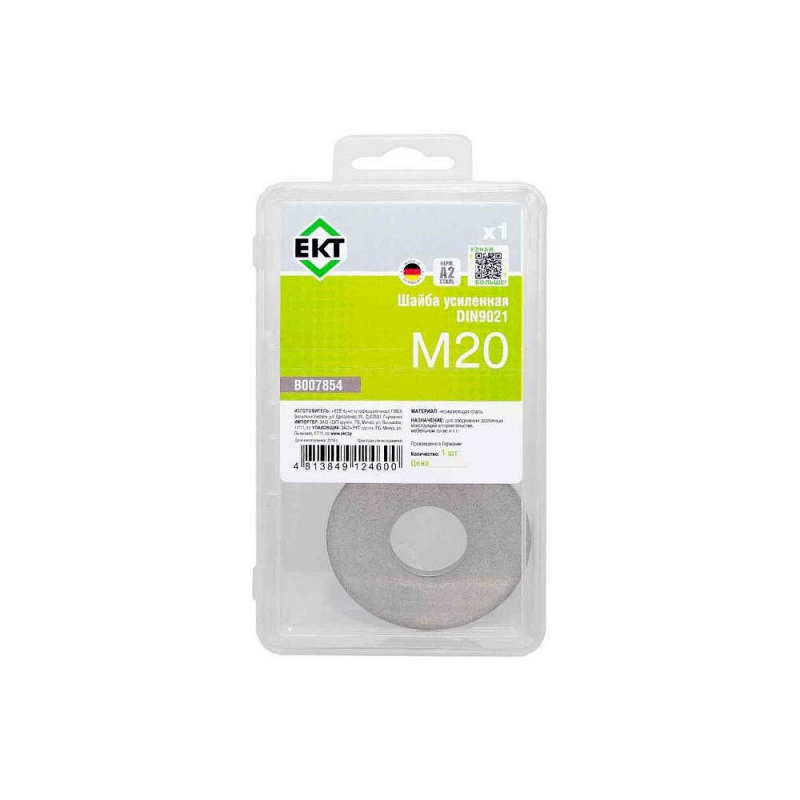 Усиленная плоская шайба М20 из нержавеющей стали, соответствующая стандарту DIN 9021 с классом прочности 4.8. Поставляется по 1 штуке в упаковке.