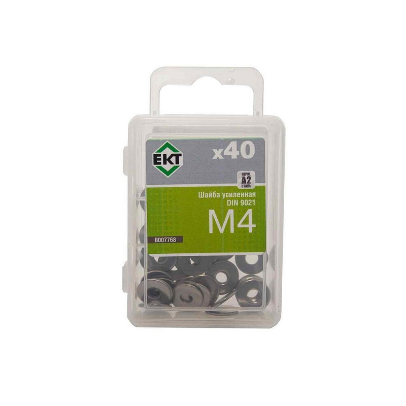 Шайба плоская усиленная из нержавеющей стали М4, стандарт DIN 9021, класс прочности 4.8. Упаковка: 40 штук. Бренд: ЕКТ. Производитель: ООО «ЕКТ Компани» (Германия). Вес упаковки: 0.031 кг.