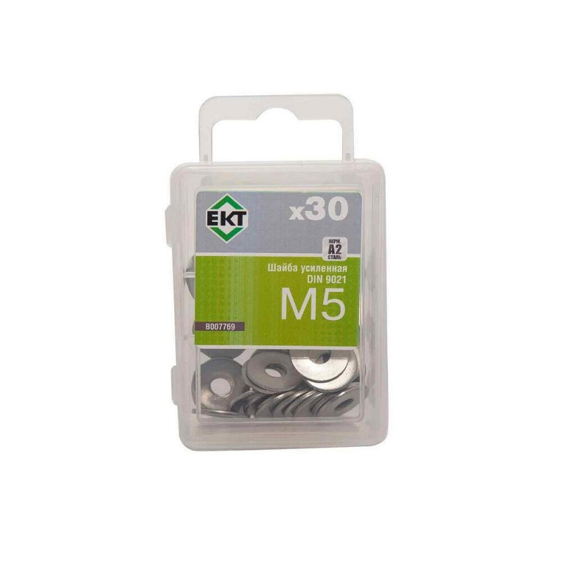 Шайба плоская усиленная из нержавеющей стали, диаметр М5. Соответствует стандарту DIN 9021, класс прочности 4.8. Упаковка содержит 30 штук.