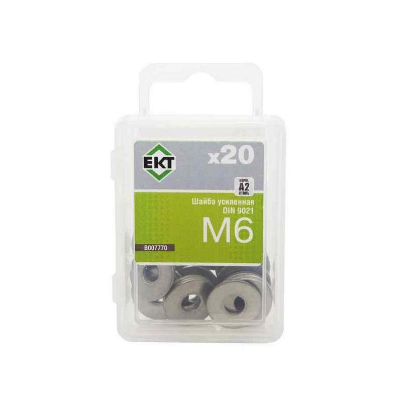 "description": "Бренд: ЕКТ. Тип товара: шайба. Тип шайбы: плоская усиленная. Материал: нержавеющая сталь. Диаметр: М7. Стандарт: DIN 9021. Количество в упаковке: 20 шт. Производитель: ООО «ЕКТ Компани». Страна производства: Германия. Вес упаковки: 0.052 кг.",
