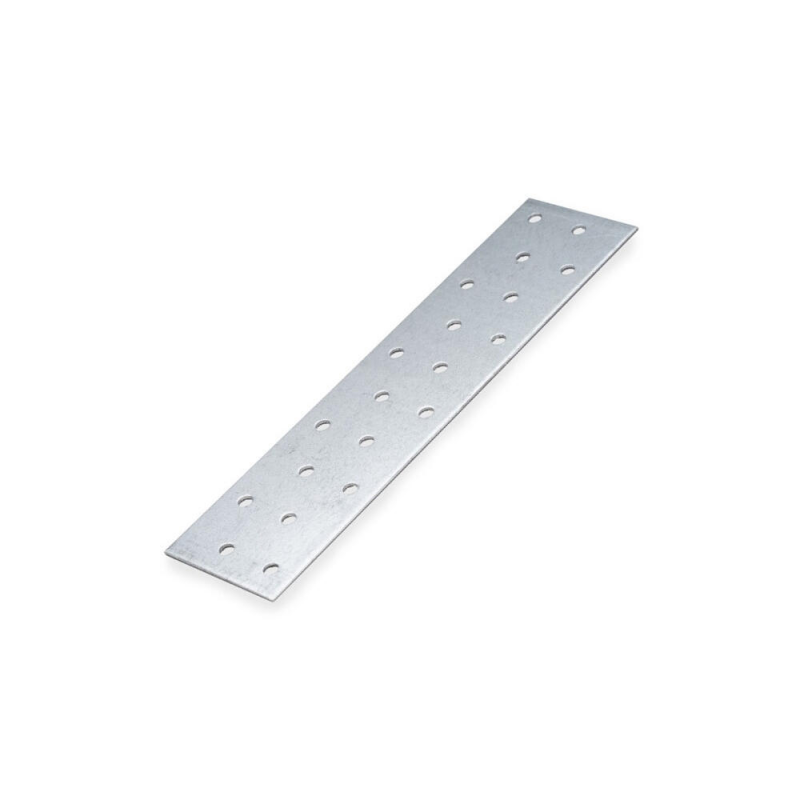 Оцинкованная соединительная пластина ЕКТ 200x50x2 мм из стали. Предназначена для надежного соединения деревянных элементов в строительных конструкциях.