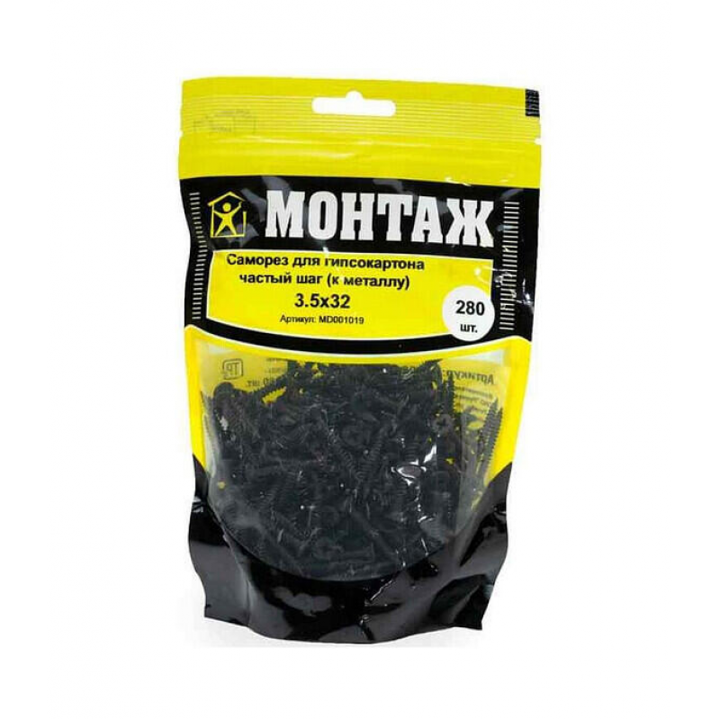 Саморез для гипсокартона по металлу, 3.5х32 мм. Острый наконечник, частый шаг резьбы (1.4-1.7 мм). Материал: сталь. Упаковка: 280 шт. Вес: 0.48 кг. Производитель: ООО «ЕКТ Компани», Беларусь.